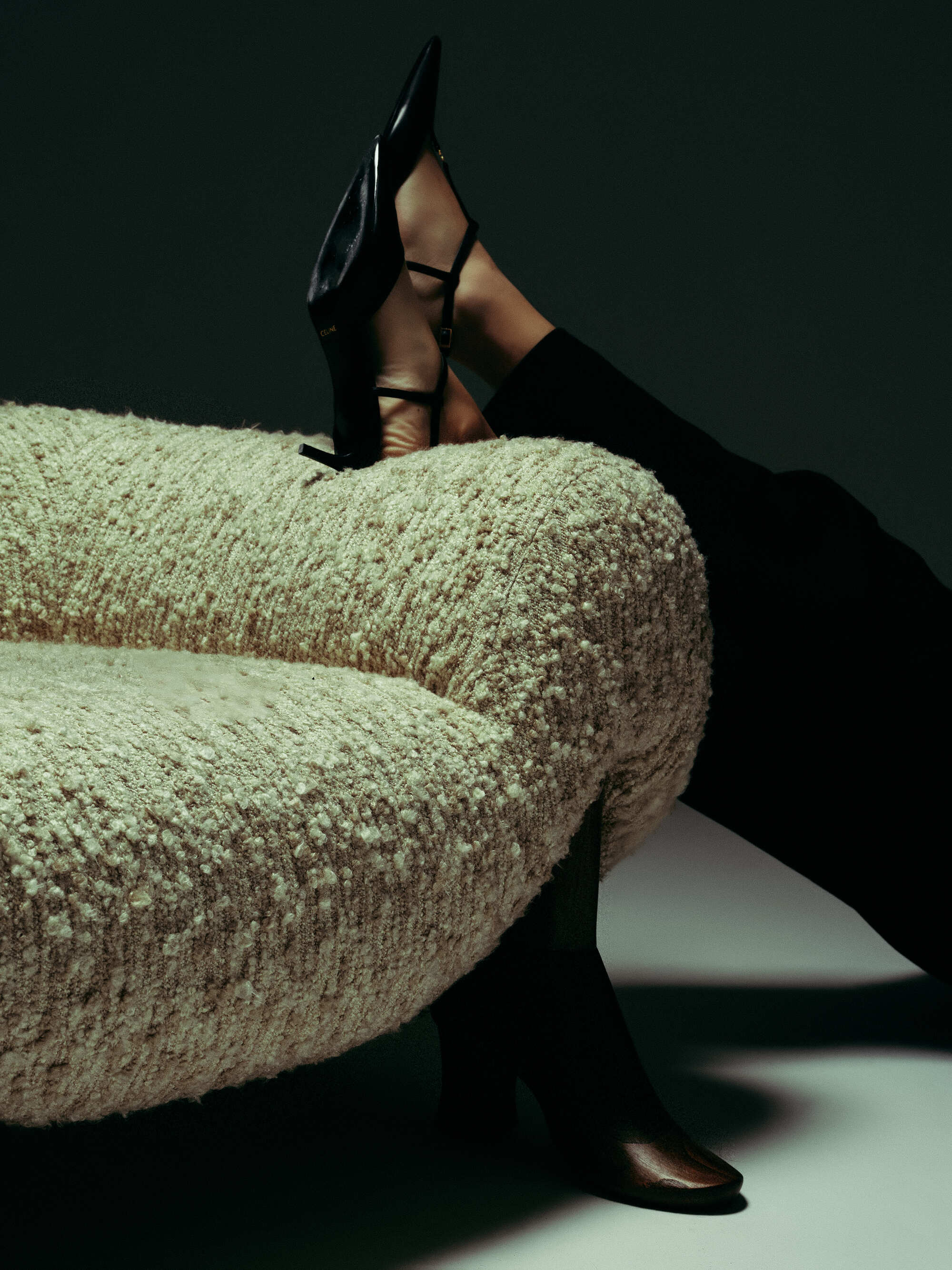 Crafted from high-quality plush fabric, it offers both comfort and a soft texture, ideal for relaxing. The chair's most striking feature is its legs, carved from oak wood into the form of high-heeled shoes, blending traditional craftsmanship with a bold aesthetic statement. The use of oak not only contributes to the chair’s stability but also provides a natural, warm finish that contrasts with the plush fabric. Perfect as a statement piece, this chair encapsulates a blend of luxury and artistry, making it an eye-catching addition to any space.