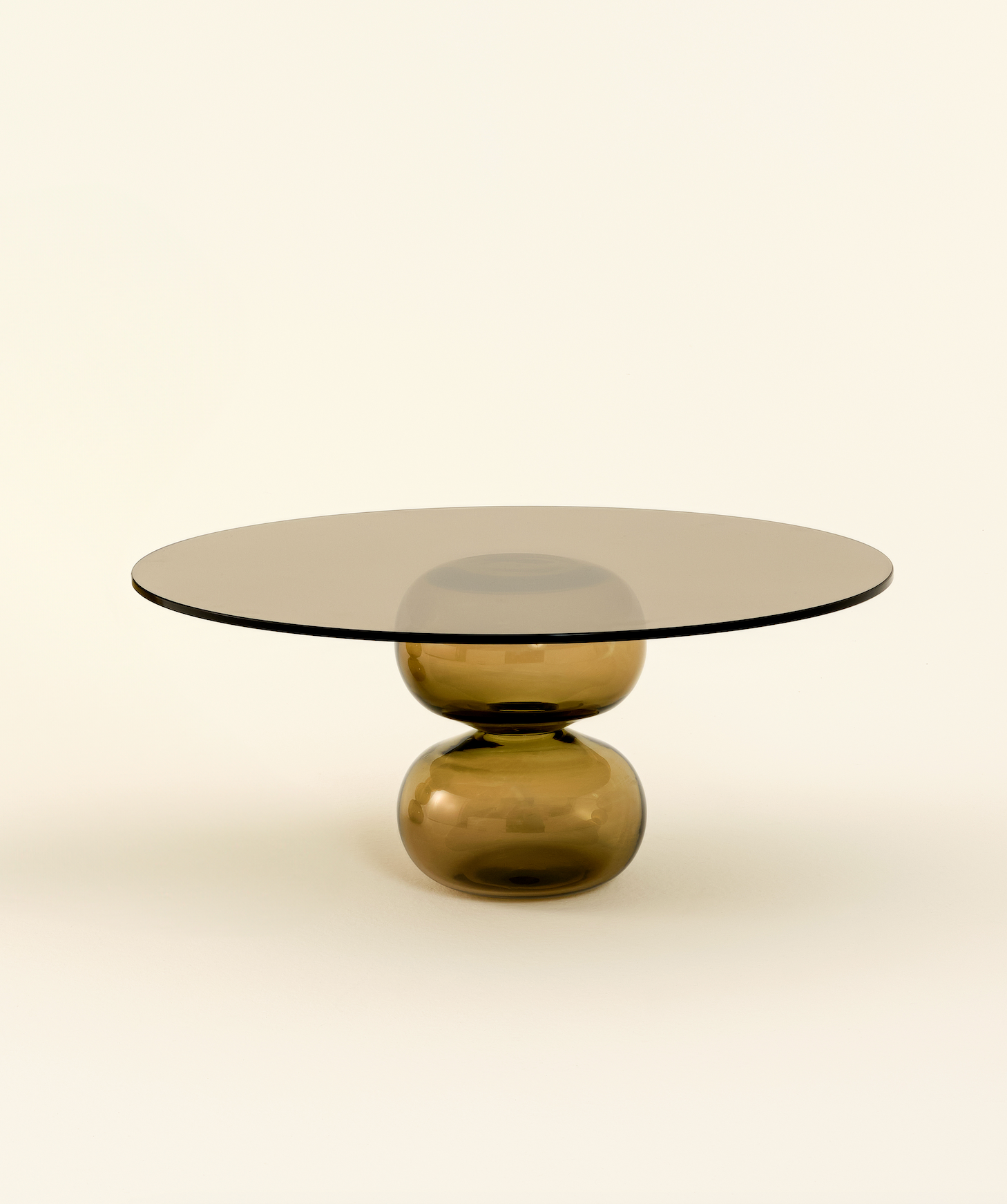 The Donut Coffee Table and Side Tables are thoughtfully designed with round bases crafted from mouth-blown glass, each showcasing subtle, unique variations that reflect the artistry of hand-blown techniques. The tops are made from tempered glass, selected for its high durability and impact resistance, providing a sturdy and secure surface. The transparency of the tempered glass and the sculptural bases creates an open, minimalist look, making these tables adaptable to a range of interior styles. This design combines aesthetic refinement with practical strength, celebrating both the beauty of handmade glass and the functionality required for everyday use.