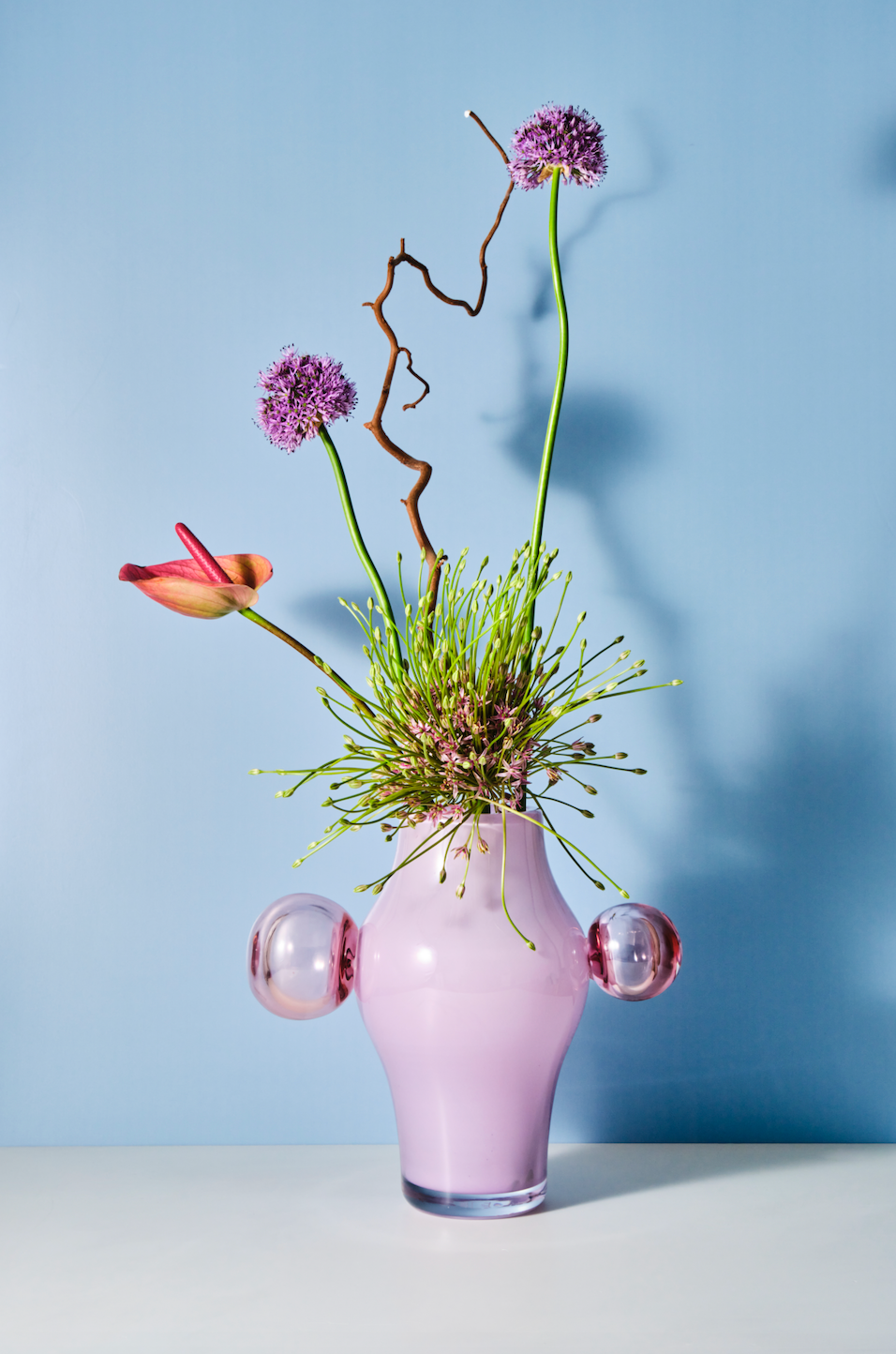 Cheeky Giant is a bold vase designed to make a statement with its large size and unique shape. It can be used to display fresh flowers or as a standalone decorative piece.